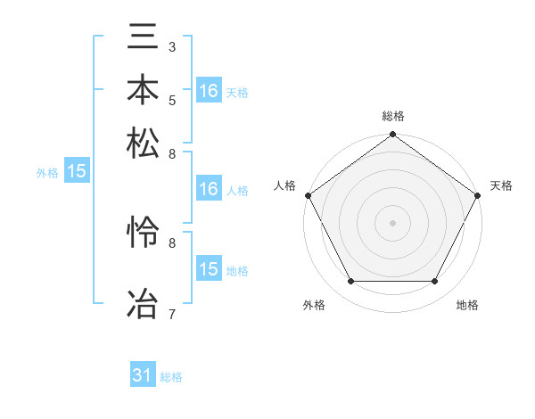 三本松 怜冶さんを姓名の画数から五運を鑑定