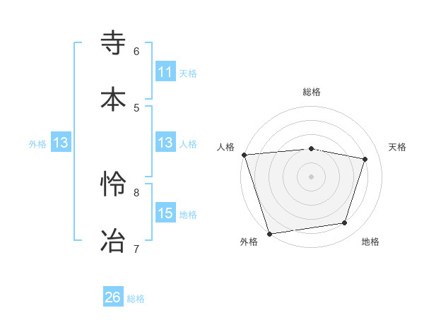 寺本 怜冶さんを姓名の画数から五運を鑑定