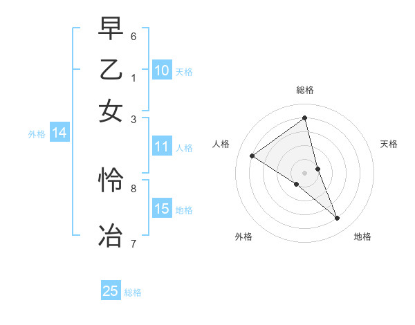 早乙女 怜冶さんを姓名の画数から五運を鑑定
