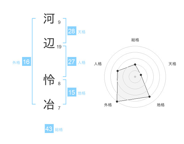 河辺 怜冶さんの外格は16画の5点!