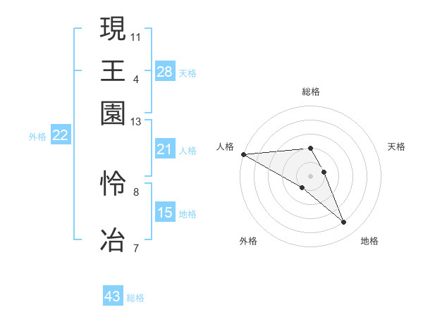 現王園 怜冶さんを姓名の画数から五運を鑑定