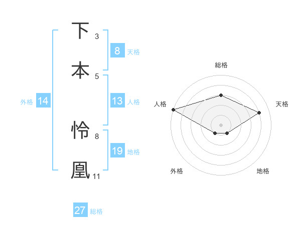 下本 怜凰さんを姓名の画数から五運を鑑定