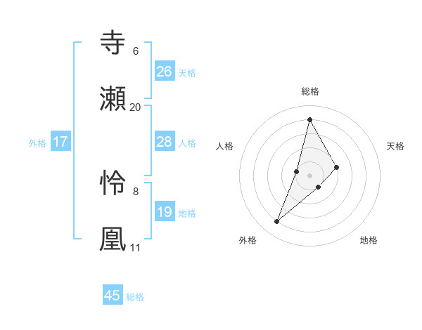 寺瀬 怜凰さんの総格は45画の4点!
