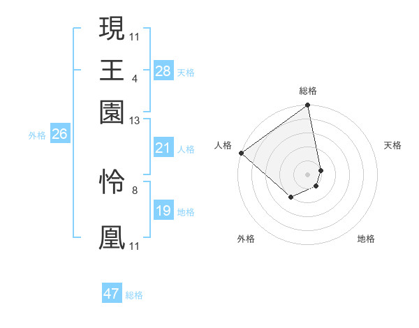 現王園 怜凰さんを姓名の画数から五運を鑑定