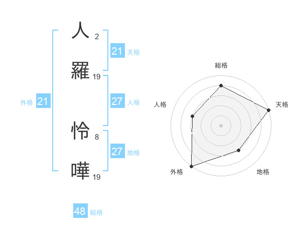 人羅 怜嘩さんの総格は48画の4点!