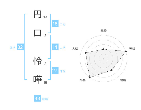 円口 怜嘩さんを姓名の画数から五運を鑑定