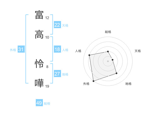 富高 怜嘩さんを姓名の画数から五運を鑑定