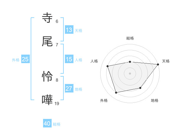 寺尾 怜嘩さんの天格は13画の5点!