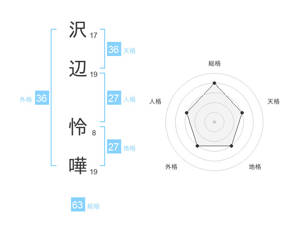 沢辺 怜嘩さんの総格は63画の4点!