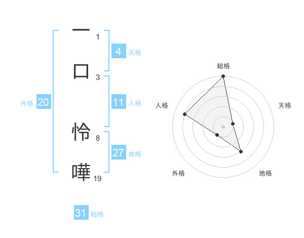 一口 怜嘩さんの総格は31画の5点!