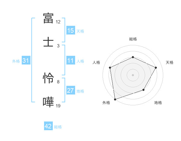 富士 怜嘩さんの天格は15画の4点!