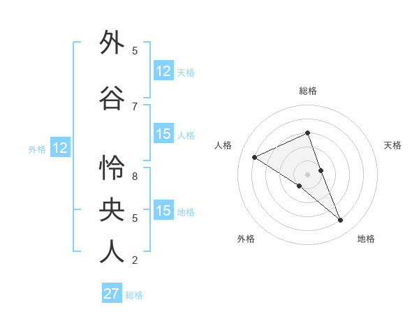 外谷 怜央人さんの総格は27画の3点!