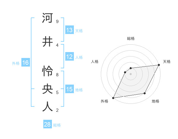 河井 怜央人さんを姓名の画数から五運を鑑定