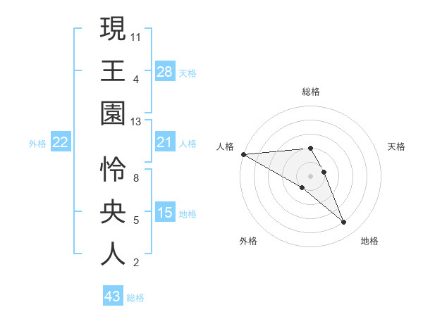 現王園 怜央人さんの人格は21画の5点!