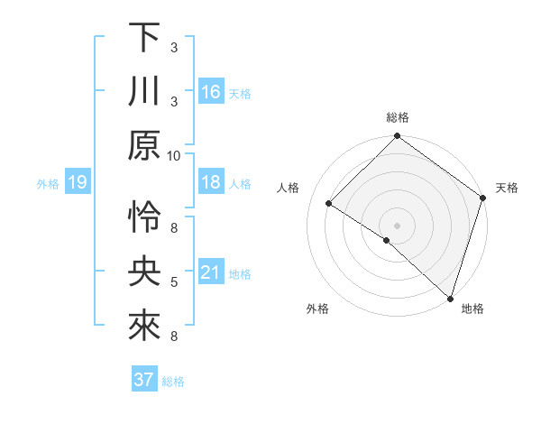 下川原 怜央來さんを姓名の画数から五運を鑑定