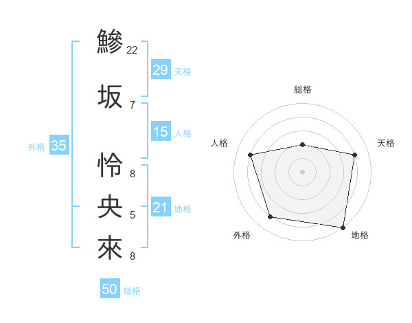 鰺坂 怜央來さんの総格は50画の2点!