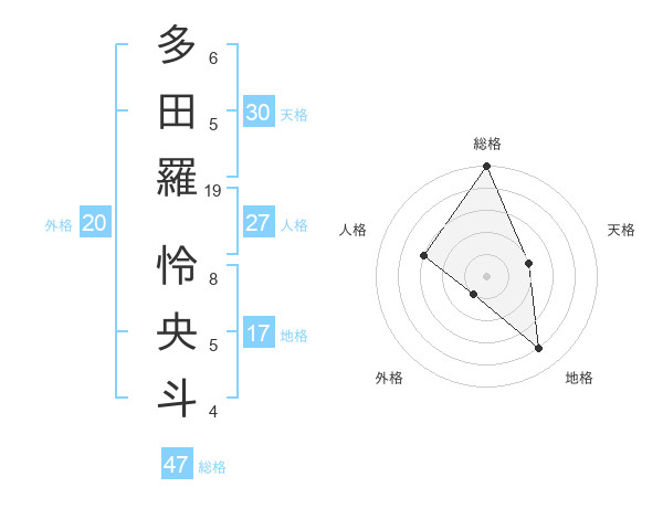 多田羅 怜央斗さんの総格は47画の5点!