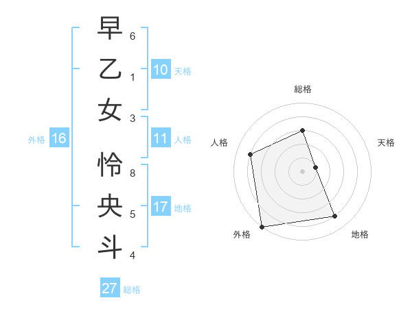 早乙女 怜央斗さんを姓名の画数から五運を鑑定