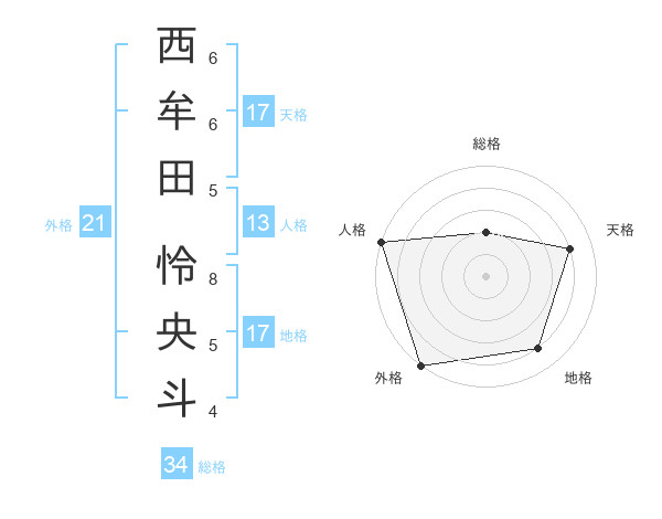 西牟田 怜央斗さんを姓名の画数から五運を鑑定
