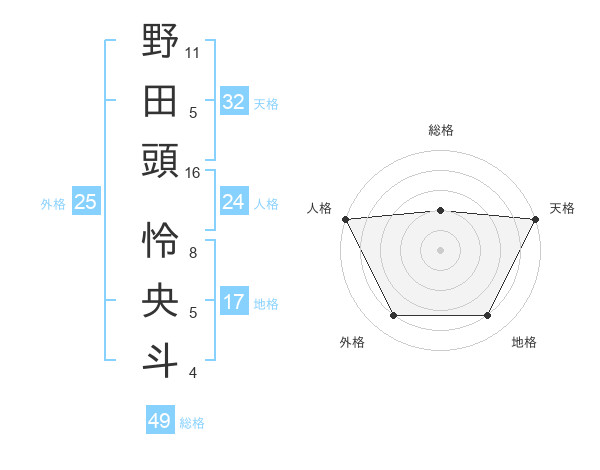 野田頭 怜央斗さんを姓名の画数から五運を鑑定