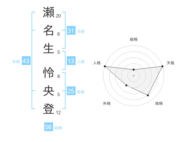 瀬名生 怜央登さんの天格は31画の5点!