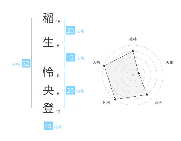 稲生 怜央登さんを姓名の画数から五運を鑑定