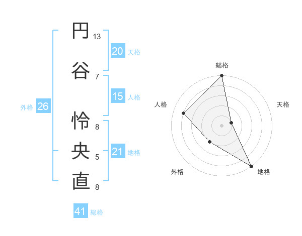 円谷 怜央直さんを姓名の画数から五運を鑑定