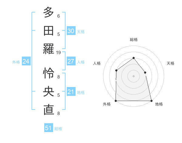 多田羅 怜央直さんの総格は51画の3点