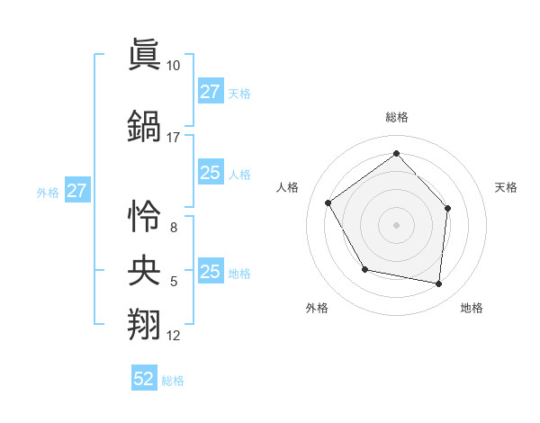 眞鍋 怜央翔さんの総格は52画の4点!