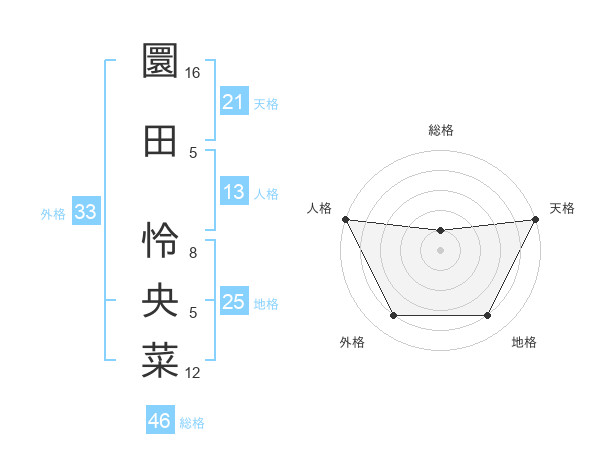 圜田 怜央菜さんの天格は21画の5点!