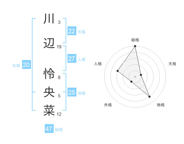 川辺 怜央菜さんを姓名の画数から五運を鑑定