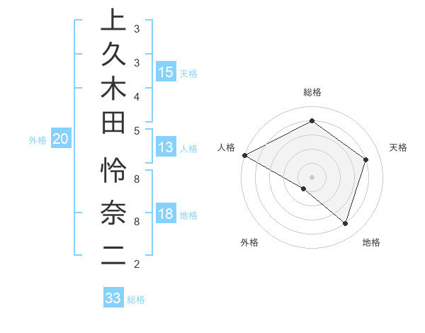 上久木田 怜奈二さんの総格は33画の4点!