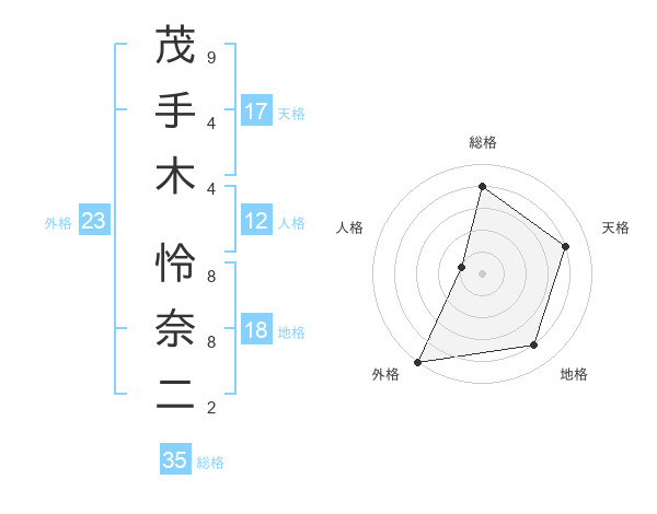 茂手木 怜奈二さんの総格は35画の4点!