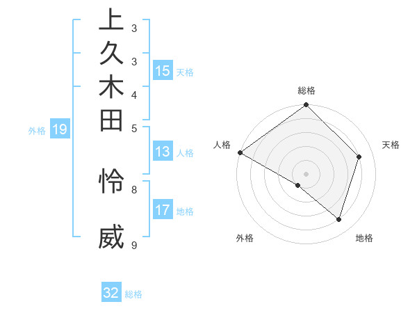 上久木田 怜威さんの外格は19画の1点