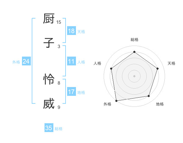 厨子 怜威さんの総格は35画の4点!