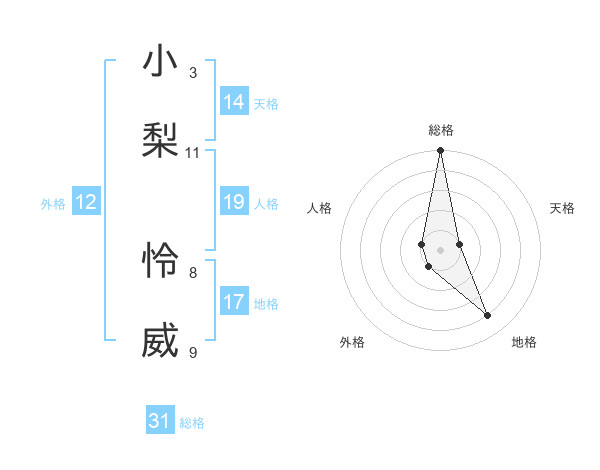 小梨 怜威さんの総格は31画の5点!