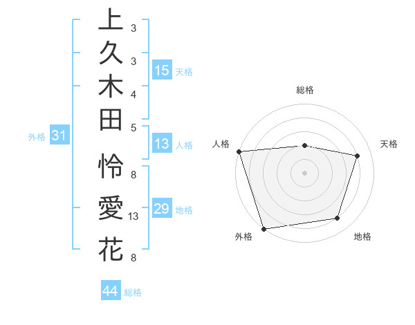 上久木田 怜愛花さんを姓名の画数から五運を鑑定