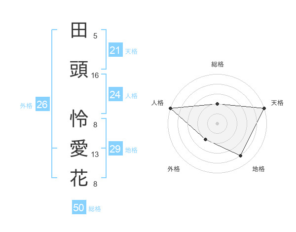 田頭 怜愛花さんの総格は50画の2点!
