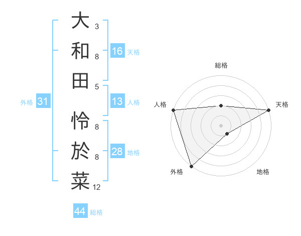 大和田 怜於菜さんを姓名の画数から五運を鑑定