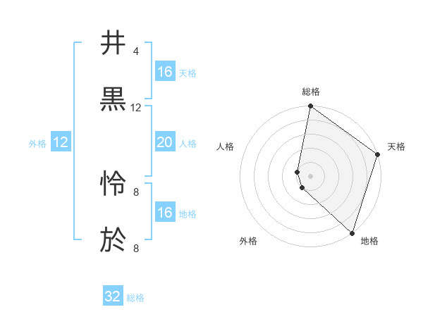 井黒 怜於さんを姓名の画数から五運を鑑定