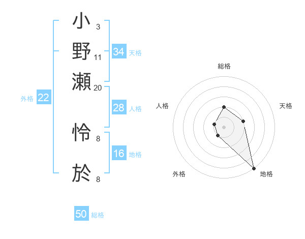 小野瀬 怜於さんを姓名の画数から五運を鑑定
