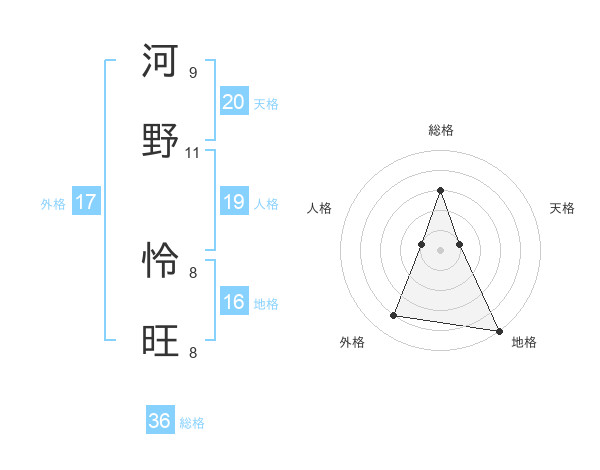 河野 怜旺さんの外格は17画の4点!