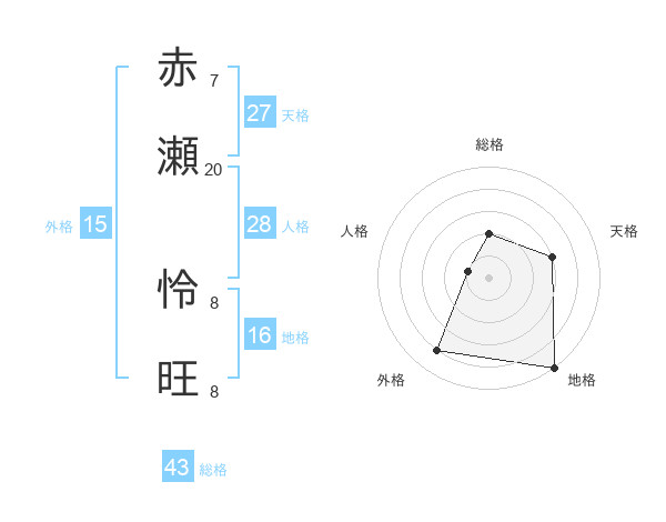 赤瀬 怜旺さんの総格は43画の2点!