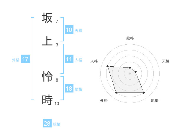 坂上 怜時さんを姓名の画数から五運を鑑定