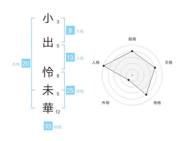 小出 怜未華さんを姓名の画数から五運を鑑定