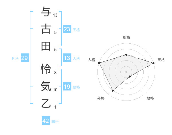 与古田 怜気乙さんの外格は29画の4点!