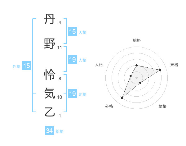 丹野 怜気乙さんの天格は15画の4点!