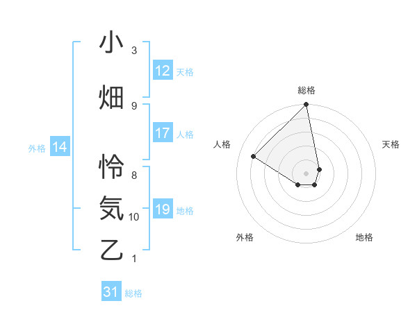 小畑 怜気乙さんの天格は12画の1点!