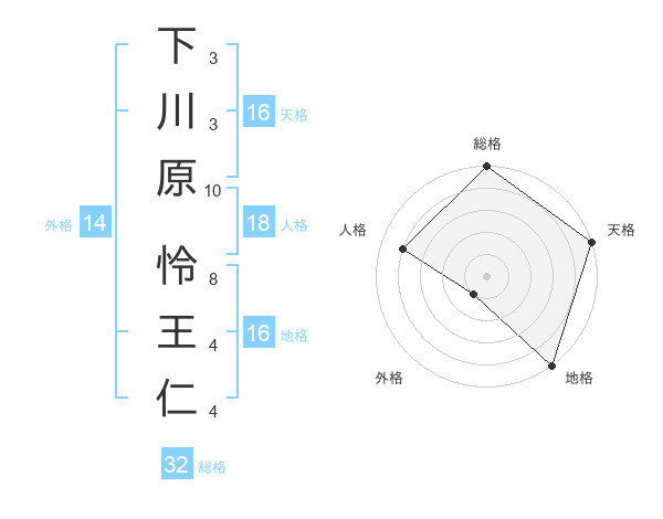 下川原 怜王仁さんを姓名の画数から五運を鑑定