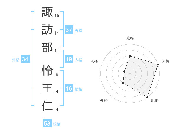諏訪部 怜王仁さんの天格は37画の5点